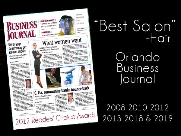 "Best Hair Salon in Orlando" Orlando Magazine 2008, 2009, 2010, 2011, 2012, 2013, 2014, 2015, 2016, 2017, 2018, 2019, 2020, 2021, 2022, 2023, 2024, & 2025